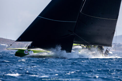 “This was a fantastic race, one of the best,” said Frederic Puzin, skipper of the Carkeek 54 DAGUET 5 (FRA), and he should know: his impressive offshore race record includes podium finishes in other 600-mile classics such as the Caribbean 600, Sydney-Hobart and Middle Sea races. DAGUET had an impressive finish today, passing the finish line below the Temple of Poseidon only 11 minutes behind the largest monohull in the race, George Procopiou’s Volvo 70 AIOLOS (GRE), who finished at 09:32:08 EEST.