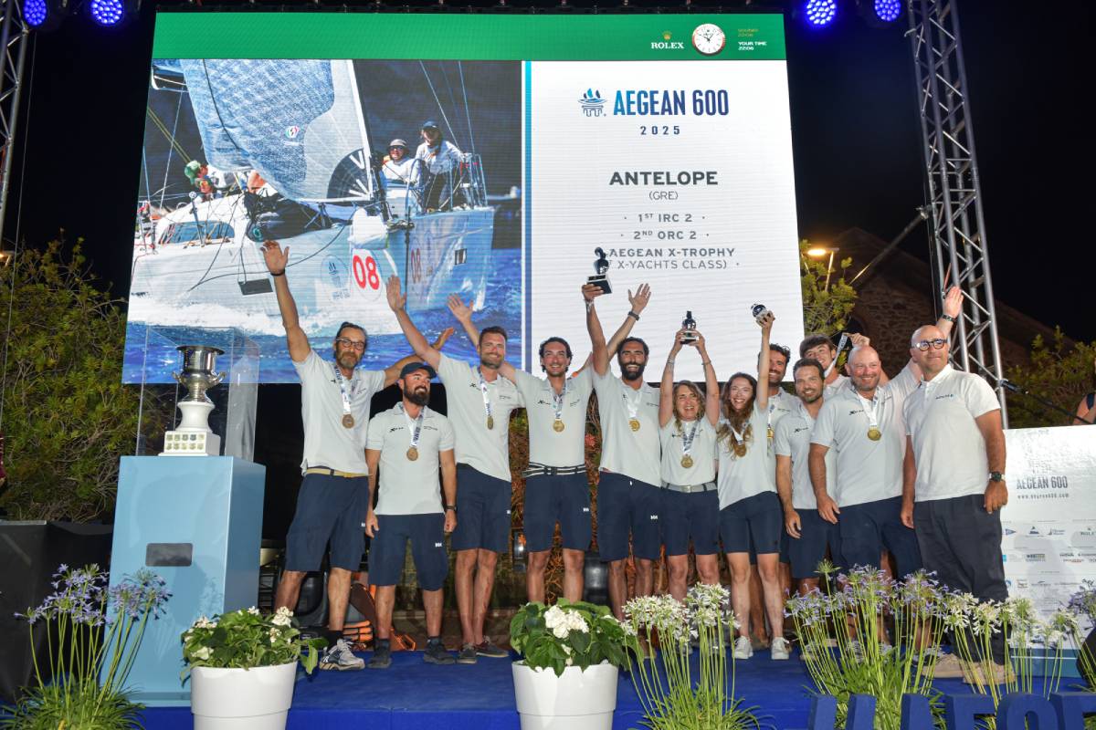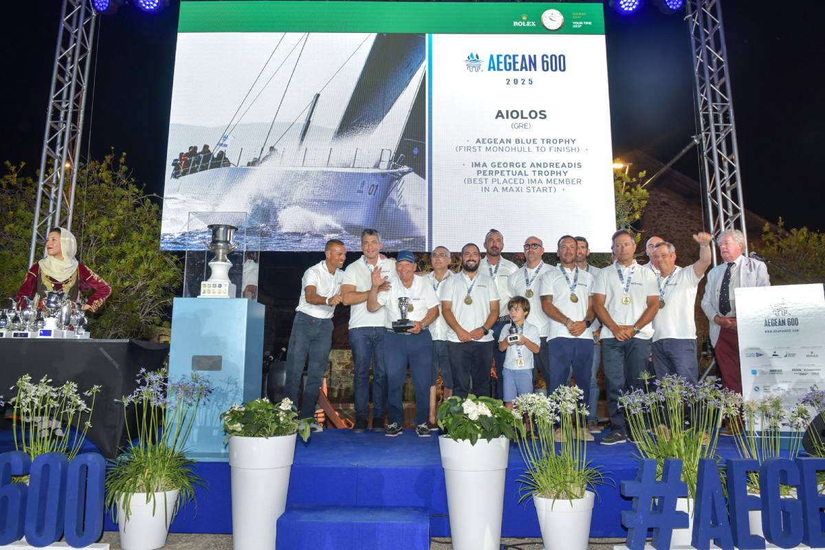 Από τα ελληνικά πληρώματα που μετείχαν στον AEGEAN 600 το AIOLOS του Γιώργου Προκοπίου ήταν ο νικητής στο Line Honours (πραγματικός χρόνος τερματισμού) στην κατηγορία Monohull, κατακτώντας έτσι τη 2η θέση της γενικής βαθμολογίας στην κατηγορία σκαφών MAXI. To ANTELOPE του Πάτροκλου Τόττα τερμάτισε 1 ο στην κατηγορία IRC2, 3ο στην κατηγορία ORC2 και ταυτόχρονα κατέκτησε και την 1η θέση ανάμεσα στα σκάφη X-YACHTS. Το AIOLIA του Σπύρου Παπαντωνίου τερμάτισε 3ο στα ORC3, το PHILEAS FOG του Δημήτρη Καλαντζή 2ο στα ORC2, ενώ στην κατηγορία ORC Double Handed πρώτευσε το EROS των Μιχάλη Αυτιά και Alexandre Cote με 2o το AETHER των Ευαγγελίας Δελίδου και Γεράσιμου Πετράτου.